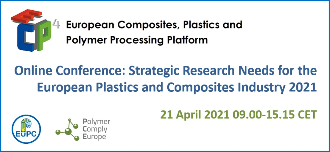 21/04/2021 ECP4, The European Composites, Plastics and Polymer Processing Platform (https://www.ecp4.eu/) is pleased to announce that the Bi-Annual Conference "Strategic Research Needs for the European Plastics and Composites Industry" will take place on the 21st of April 2021 as a virtual event. Building upon the success of previous years and after the publication in December 2020 of the “Sustainable Plastic Strategy”, ECP4 is happy to invite you to this conference that focuses on trends and solutions for the circularity challenges of many plastic industrial sectors.